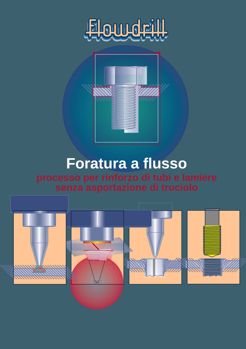 Il sistema di foratura a flusso Flowdrill consente la realizzazione di fori rinforzati su tubo o lamiera senza l’utilizzo di materiale aggiuntivo e senza asportazione del truciolo. Il sistema di foratura a flusso è ben automatizzabile, in questo caso